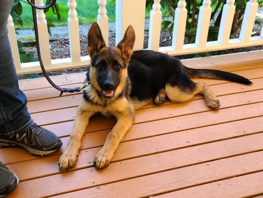 Are you looking for a running partner who can be your best friend, gentle and loving but also a deterrent? Desiring a quality German Shepherd but you don't want to go through the puppy "shark" phase? If so, you need to meet Jura. Jura has a solid foundation in obedience and actively working on her off leash skills, she is frequently demonstrating skills in our obedience classes. Crate trained, of course. She loves to lay on her bed in the house supervising the kids school work. She has a reliable temperament with people and dogs. While she adores other dogs, she knows to focus on her handler and ignore all else. The reward of a ball is her greatest motivator.